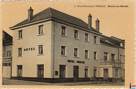 Hôtel - Restaurant Paulus, coin rue Haute / rue du Parc, Mertert (Carte postale: Photo Sterba, Grevenmacher; collection: industrie.lu)