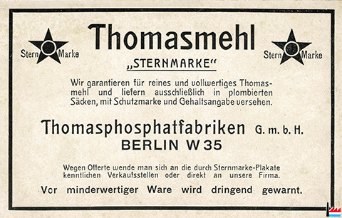 Thomasmehl der beste und billigste Phosphorsäuredünger - Die führende Marke: Stern Marke (Collection: industrie.lu)