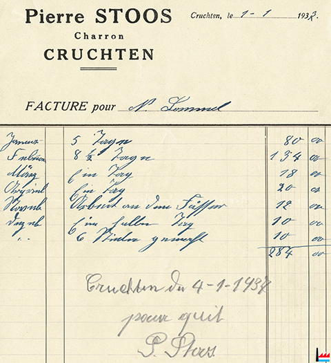 | 1937 | ![]() Stoos Pierre, Cruchten - Charron - Facture pour N. Lommel - 1937 (Collection: industrie.lu) |