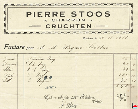 | 1931 | ![]() Stoos Pierre, Cruchten - Charron - Facture pour M. Wagner - Leisten - 1931 (Collection: industrie.lu) |