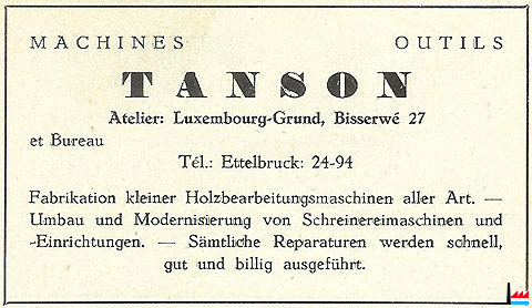 | <=1950 | Atelier de construction de machines outils Tanson 27 Bisserwee (M. J.P. Tanson) |