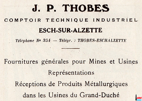 | <=1926 | J. P. Thobes - Comptoir Technique Industriel, Esch/Alzette Fournitures générales pour Mines et Usines |