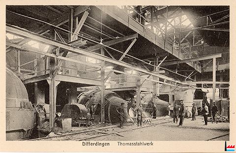 Hütte Differdingen - Thomasstahlwerk (Carte postale: Verlag Ch. Grieser, Hofphotograph, Luxemburg, 1916; collection: industrie.lu)