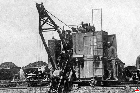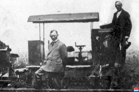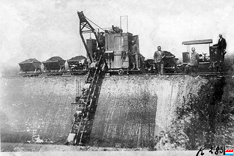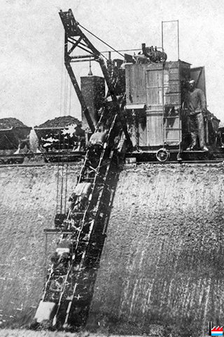 ![]() Mit Lehm gefüllte Feldbahnloren - Eimerkettenbagger - Feldbahnlok (Sammlung: Wilhelm Schommer) |