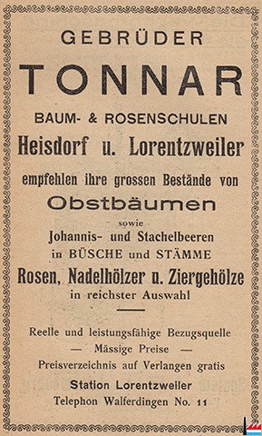| <=1933 | Tonnar frères, Heisdorf - Lorentzweiler Baum- und Rosenschulen |