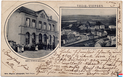 | <=1902 | ![]() Hôtel du Chemin de Fer - Wiser-Guden - Urbin Sccr.,Troisvierges - Kaart gelaf 16.11.1902 (Carte postale: collection Robert Wagener) |