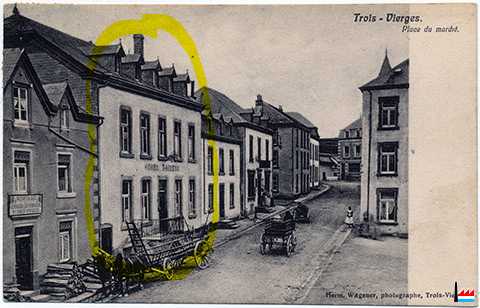 Dat Haus war well fréi ofgerappt (an den 20er ass et net méi op de Postkaarten drop) Haut ass do een Eck Wues, e puer Beem a Parkplazen ongeféier vis-à-vis vun Haus No 7 rue d‘Asselborn L-9907 Troisvierges