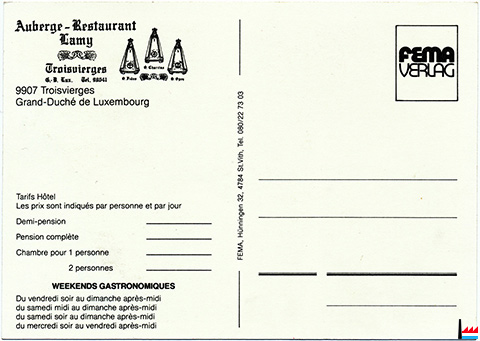 | <=1984 | Auberge-Restaurant Lamy, Troisvierges, tél: 98041 Propr.: Mme Molitor-Gengler |