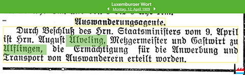 | 27.5.1909 | Ulflingen, 27 Mai. Heute morgen fanden Ersatzwahlen für die verlebten HH. Carbon und Cornely. ... (LW: 27.5.1909) |