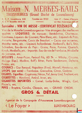 ![]() Maison N. Merkes-Kails, Troisvierges, tél: 36 - 1954 (Collection: industrie.lu) Fondée: 1920 |