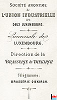 | 24.4.1881 | L'Union industrielle des deux Luxembourg devient propriétaire de tout ce qui était réputé immeuble par destination (accessoires et installations industrielles) de la Brasserie par actions de Diekirch | ||