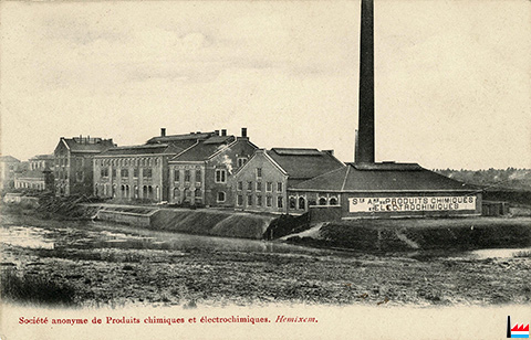 Société anonyme de Produits chimiques et électrochimiques - Hémixem - vers 1907 (Carte postale: Edit. Mlle M. Depuis; collection: industrie.lu)