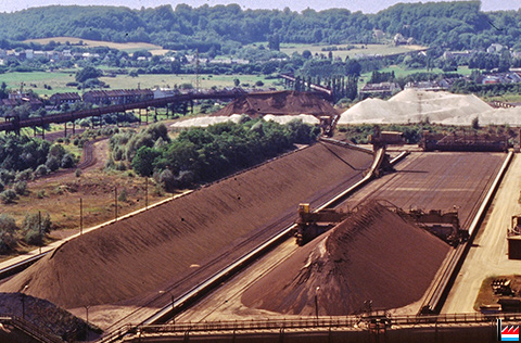 | 3.1971 | Einweihung Sinterwerk - Agglomération Belval (e.a. site Source Bel-Val) 2,5 km langes Förderband (Belvaler Band) welches das Eisenerz aus Lothringen vom CRM (Centre de Répartition des Minerais) in Esch-Hoehl zur der Brech-Siebanlage bringt - bande transporteuse amenant le minerai lorrain depuis le CRM (Centre de Répartition des Minerais) à Esch-Hoehl Entladequai mit Lagerhalde für Übersee-Eisenerz Einrichtungen für das Entladen von Eisenerz, Koks, Zuschlagstoffen, etc. Erzbrechanlage - Siebanlage: in geschlossenem Kreislauf arbeitend, 2.200 t / h Bedding = Mischbettanlage, zum Mischung des Eisenerzes unterschiedlicher Qualität, mit 2 Lagerplätzen von je 200.000 t; 1 (später 2) Lagerhalden von je 500 x 40 m und einer Kapazität von 200.000 t