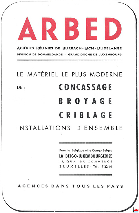 1955 - ARBED - Concassage - Broyage - Criblage - Pulvérisation. - Dans: "Luxembourg - Au service du Congo" - Publié par le Service d’expansion économique avec la collaboration de la Fédération des industriels, 1955, Imprimerie Bourg-Bourger, Luxembourg (Collection Charles-Louis Aschman)