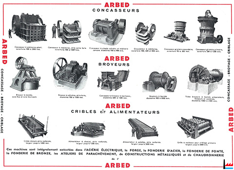 | 1921 | Début de concasseurs, types à meules, sur plans étrangers |