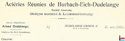 21.11.1935 - Aciéries Réunies de Burbach-Eich-Dudelange S. A. - Arbed-Dudelange - Papier à lettre à entête - Archives Camille Aschman Jr. - Collection famille Aschman-Bodson.