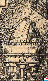 Oberer Teil eines neuen Düdelinger Hochofens. Solch ein Ofen erzeugt pro Tag 500.000 kg Roheisen. (Aus: Daten aus der Luxemburgischen Eisenindustrie, n° X. - Zusammengestellt von Camille Aschman, A-Z 1935-36