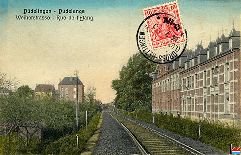 Düdelingen, Weiherstraße - Dudelange, rue de l'Etang <= 14.7.1910 (Carte postale; collection: Emile van der Vekene)