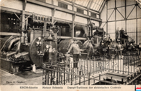 ![]() Esch/Alzette - Metzer Schmelz: Dampf-Turbinen der elektrischen Centrale - AEG-Generatoren (Photo: A. Cacciani; Collection: Marcel Schlim) |