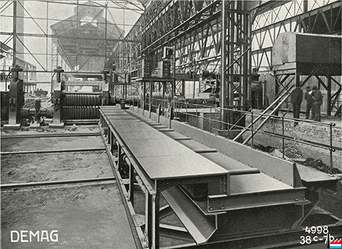 Train mobile de rouleaux DEMAG actionné électriquement, livré à l'Usine de Rodange (Catalogue: Le laminoir - DEMAG, Duisburg, 1918; collection: Philippe Aschman)