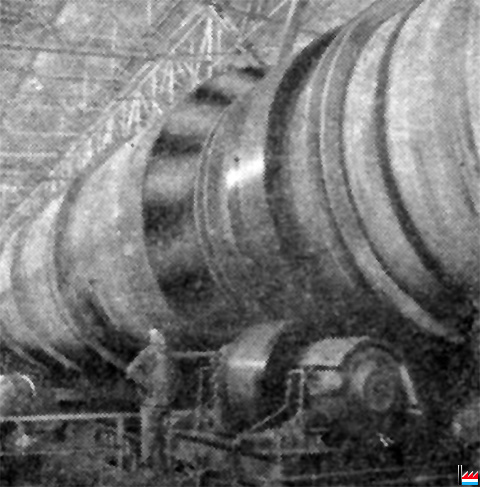 | 5.1955 | Mise en service - Inbetriebnahme: 4 langsam drehende mit Hochofengas geheizte 92 m lange (Smidth ?) Sinteröfen (Durchmesser 5 m) in Terre-Rouge, Esch/Alzette Abtransport: vollautomatisch über mechanische Förderbänder |