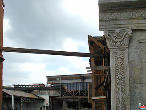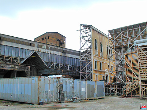 Filmkulissen von Venedig anno 1492 für den Film "Passage secret" von Delux Productions S.A. und Zephyr Films auf dem Terre Rouge - Gelände in Esch/Alzette. Der Film wurde dort von Regisseur Ademir Kenovic mit Katherine Borowitz, Tara FitzGerald, John Turturro, Hannah Taylor Gordon in den Hauptrollen im Juli 2001 gedreht. Die Kulissen wurden im Juli 2005 abgerissen. (Photos: 12.5.2002 jmo) |