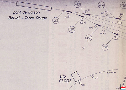 Pont de liaison Belval - Terre Rouge - silo Cloos (Plan Mars /avril 1973 73 0521 Anen / Schommer)