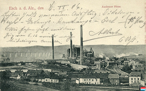 Aachener Hütte, Esch/Alzette - Poststempel: 12.4.1912 (Carte postale: 3401 Kremer-Müller, Esch, a.d.A.; Collection: Marcel Schlim)