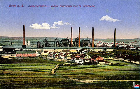 | ? | ![]() Aachener Hütte - Esch/Alzette (Carte postale: H.G. & Co., Z. N° 7436a dép. - 8667 - Kremer-Müller, Pap., Esch/Alzette, Collection: industrie.lu) |