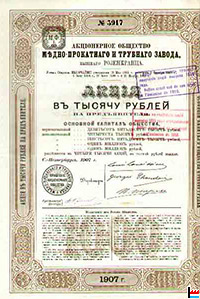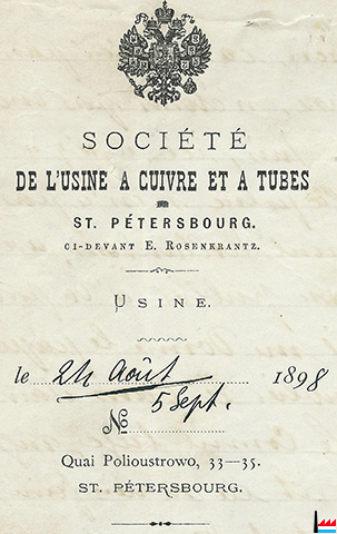 Société anonyme de l'Usine à cuivre et à tubes, ci-devant Rosenkrantz,Saint-Pétersbourg АО медно-прокатного и трубного завода, бывшего Розенкранца Aktiengesellschaft der Kupfer- und Röhrenwerke, vormals Rosenkrantz