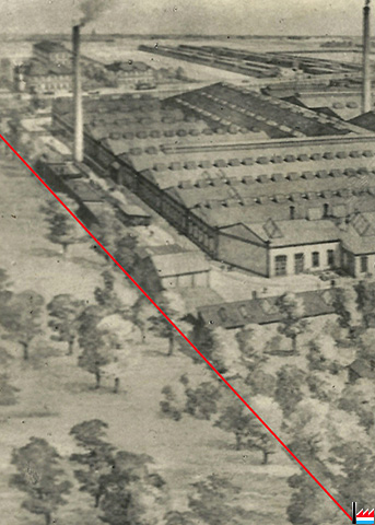 « Le long du jardin des Charlier, j’ai construit vers 1909 le grand bâtiment de 3 étages pour laminage de fines tiges, etc. (a couvert le Modelage également).» (Notes manuscrites de Raymond de Muyser, ingénieur en chef, chef du bureau technique de l’Usine à cuivres et à tubes)