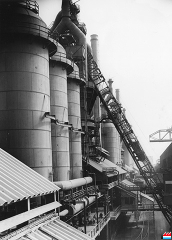1947 - Ansicht Hochofen 5 von der Beschickungsseite (Photo - Glasplatte Nr. 7013: voestalpine AG)