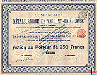 | 1896 | Fondation Compagnie Métallurgique de VERCHNY - DNIEPROVSK |