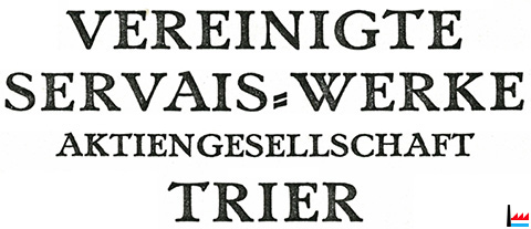 | 1940 | ![]() Der Name der Firma wurde abgeändert in „Servais Werke A.-G." und der Sitz von Trier nach Witterschlick verlegt. |