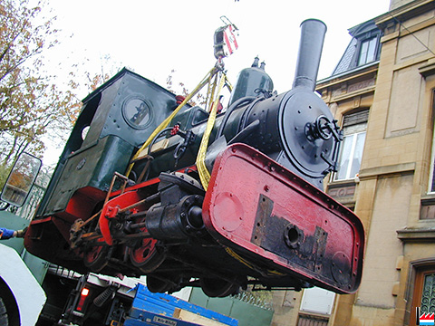 Die Dampflok "Krauss & Co" (No 3175 de 1895; 800 mm) kurz vor dem Abtransport nach Meiningen (Photos: 14. / 19.11.2001 jmo)