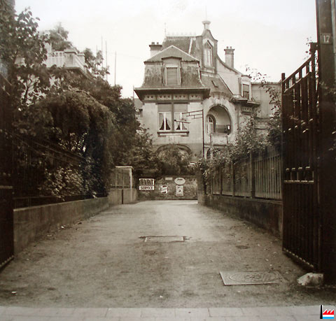 Entrée des Ateliers Emile Georges depuis 17 rue Goethe, en arrière-plan