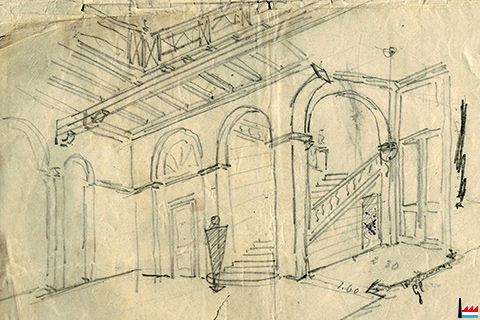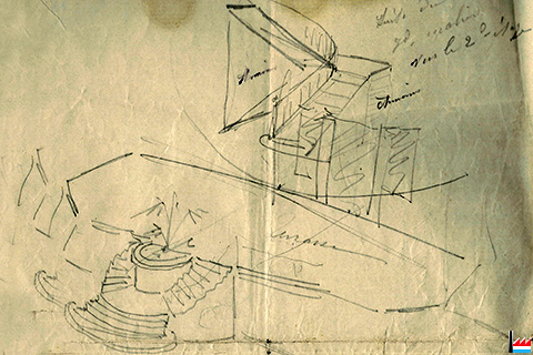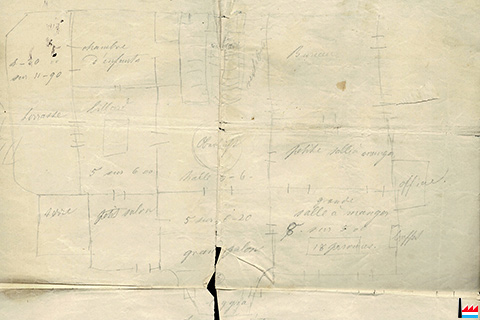 ![]() ![]() Croquis de la Villa Servais, Ehrang ? - de Paul Jaspar ? de Paul Servais ? (Archives Famille Servais, Luxembourg) |