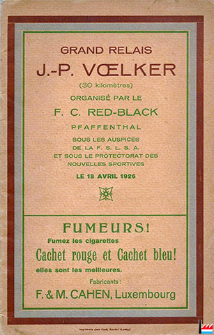 GRAND RELAIS J.-P. VOELKER (30 kilomètres) organisé par le F. C. RED-BLACK, Pfaffenthal, le 18 avril 1926 - Brochure de 14 pages - Imprimerie Jean Heck, Neudorf (Luxemb.) (Collection famille Aschman-Bodson)