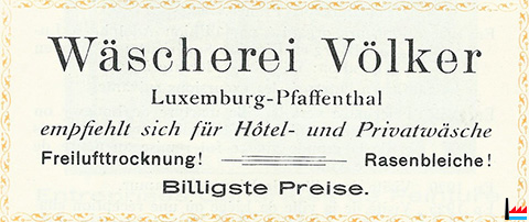 1930 - W äscherei Völker. - dans: Fanfare de Pfaffenthal 1905-1930 - Programme officiel - Imprimerie Centrale Gustave Souppert, Luxembourg. - Collection famille Aschman-Bodson