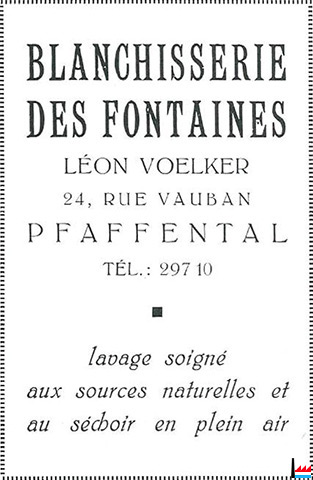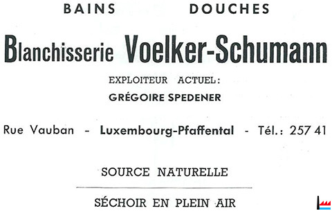 | <=1949/50 | Blanchisserie Voelker - Schumann Propriétaire: Grégoire Spedener Bains - Douches - Sources naturelles - Séchoirs en plein air |