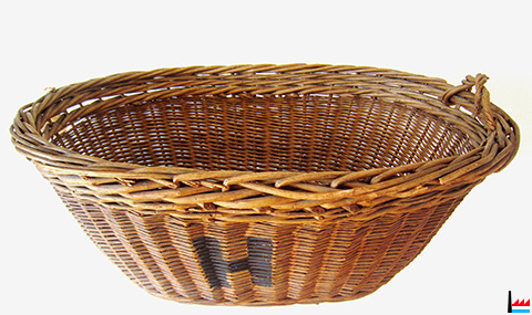 Grand panier de blanchisserie en osier (78 x 56 x 32 cm) de la Blanchisserie Voelker. (Collection Charles-Louis Aschman)