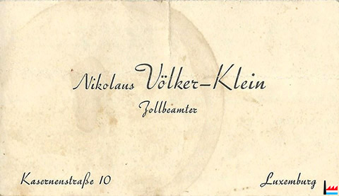 | 1904 | Spezereiw.: Völker Vaubanstr. 43. Quelle: Luxemburger Handels-Adressbuch 1904 (Collection Philippe Aschman, Luxembourg) |