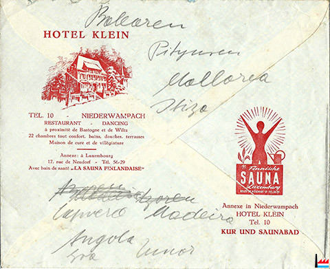| 8.1953 | VILLÉGIATURE - Hôtel Klein, Nlederwampach bei Wiltz. Kegelbahn, Weekend. Kur, Sauna - Bad. Tel. 10. Festspielbesucher, benutzet die Gelegenheit ! (LW: 7.8.1953) |