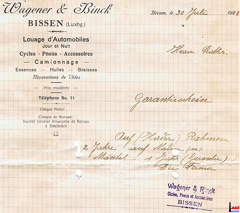 | Wagener & Binck, Bissen Louage d'automobiles cycles - pneus - accessoires Tél. 11 Réparations des vélos |