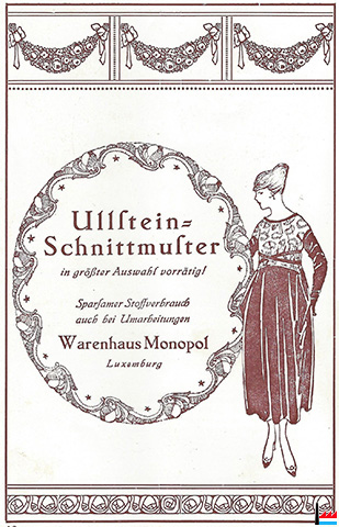 | 1917 | ![]() Warenhaus Monopol - Ullstein-Schnittmuster (Source: John Pickels - Kome’de’steck an 3 Akten vum René Leclère opgeféiert am gro’ssen Teater zu Letzebuerg am Joer 1917; Collection Charles-Louis Aschman, Luxembourg) |