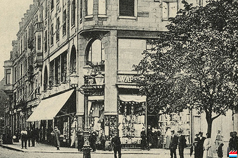 | 4.1906 | Auf dem Wilhelmsplatz sind die beiden großartigen Geschäftshäuser Simonis-Lassner und Warenhaus Monopol fertiggestellt. (LW: 26.4.1906) |