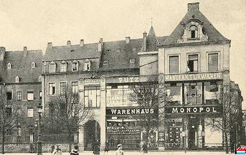 | 1911 | Vergrößerung des Warenhauses Monopol, Esch/Alzette durch Anmieten der unteren Räume des Anwesens Bettendorf, gegenüber dem Stadthausplatz | ||