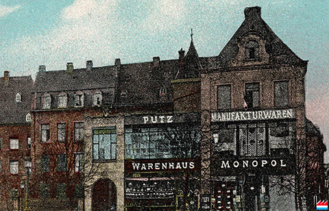 | 2.1906 | Neubauten - Die Arbeiten am Umbau des Hauses de la Fontaine am Wilhelmsplatz schreiten rüstig voran; der Neubau verspricht eine Zierde des Marktplatzes zu werden. Das Geschäft, welches darin in modernem Stile installiert wird, soll gegen Ende März unter dem Namen „Warenhaus Monopol“ eröffnet werden. ... (BBZ: 17.2.1906) |