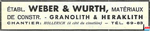 | 1947 | Etablissements Weber et Wurth sàrl 11 avenue de la Porte-Neuve Luxembourg enduits de façades Granolith |