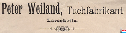 | 1889 | Weiland Pierre, Larochette, Fabricant de draps - Tuchfabrikant | ||